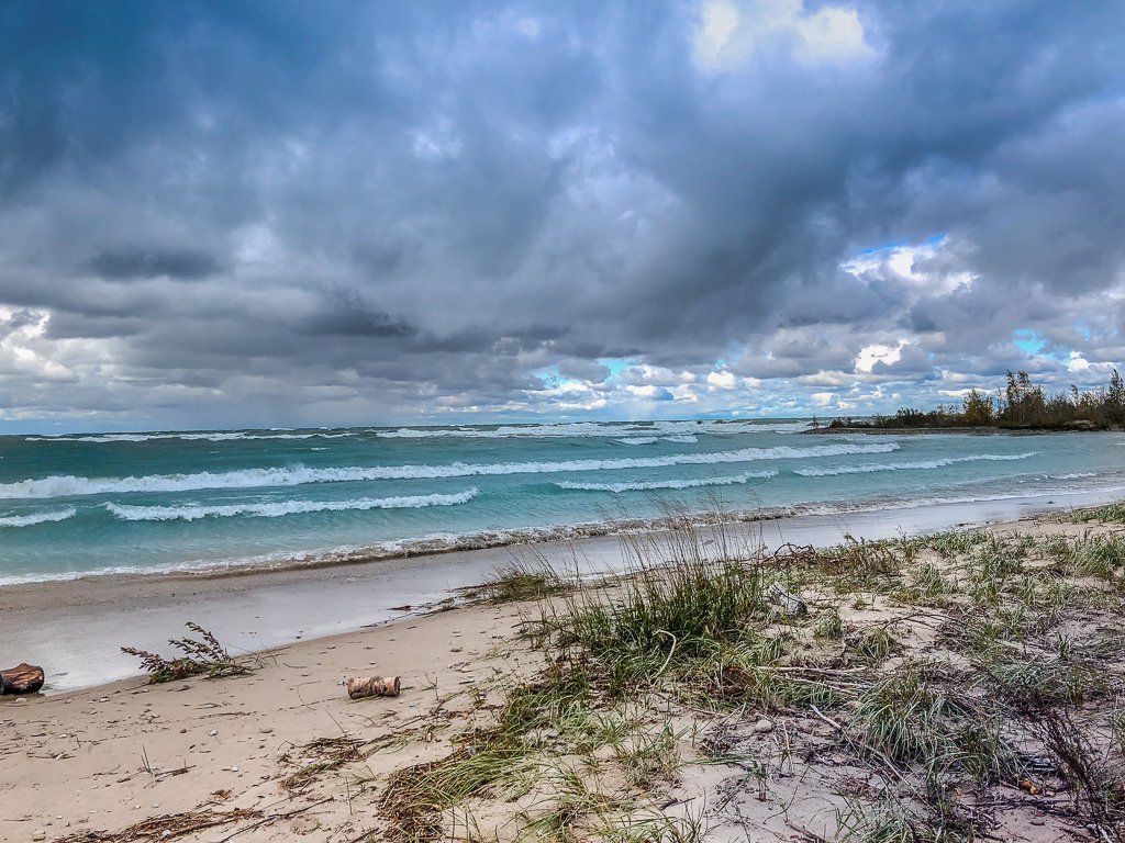 Stephen and I drove from Toronto and closed up the cottage for the season. It was a cold, windy day. We had to stop working outside from time to time due to hail.